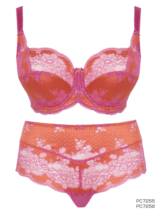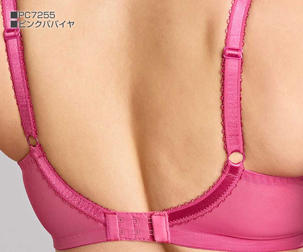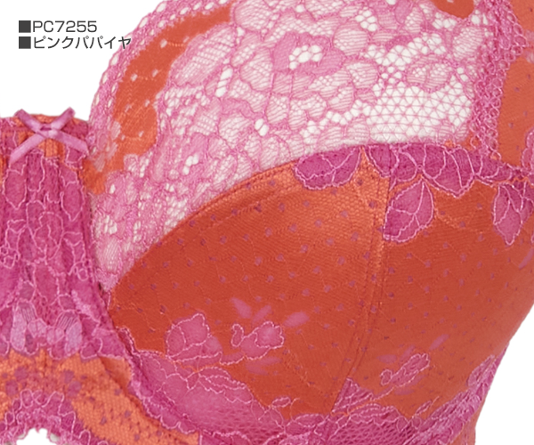 【お取り寄せ】■商品番号:PC7255APPY■本体価格9,790円■ワイヤー入り、トップカップにストレッチレース、ボトムカップにはメッシュライナーをほどこしたサイドボーンなしの3枚はぎ+インナーサイドスリング構造。