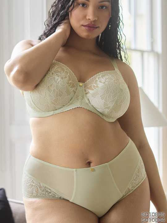 ストレッチレースのトップカップはバストにぴったりフィット、ライナーで強化されたボトムカップがバストをサポート。 アンダーワイヤーは脇下の不快感を軽減する広がりのあるオープンアウトタイプで、コンフォートなつけ心地。