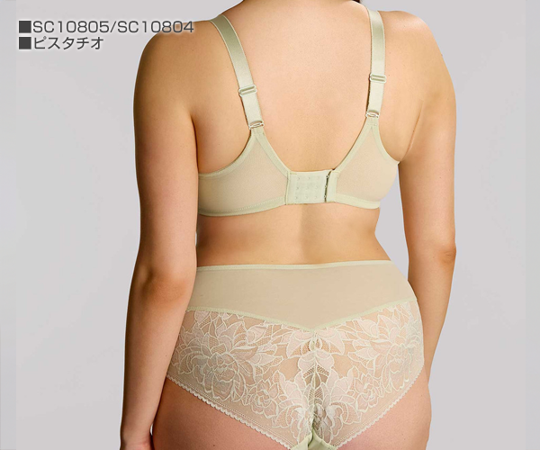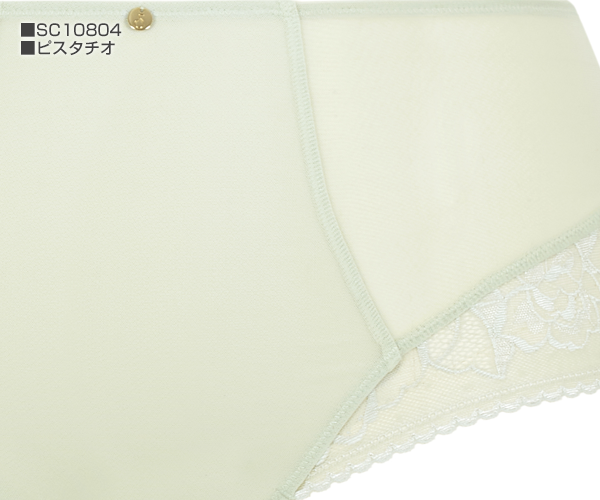 【お取り寄せ】■商品番号:SC10804PIO■本体価格6,710円■おへそ下までカバーするややはき込め深めのスタイル。 セミシアーメッシュ地のセンターパネル部分は透けにくいデザイン。足ぐりのサイドからバックヘムにかけてたっぷりフローラルストレッチレースをあしらっています。 センターフロントにゴールドのメタルチャーム。クロッチ部分はコットン。■素材:ナイロン66% スパンデックス28% コットン6%
